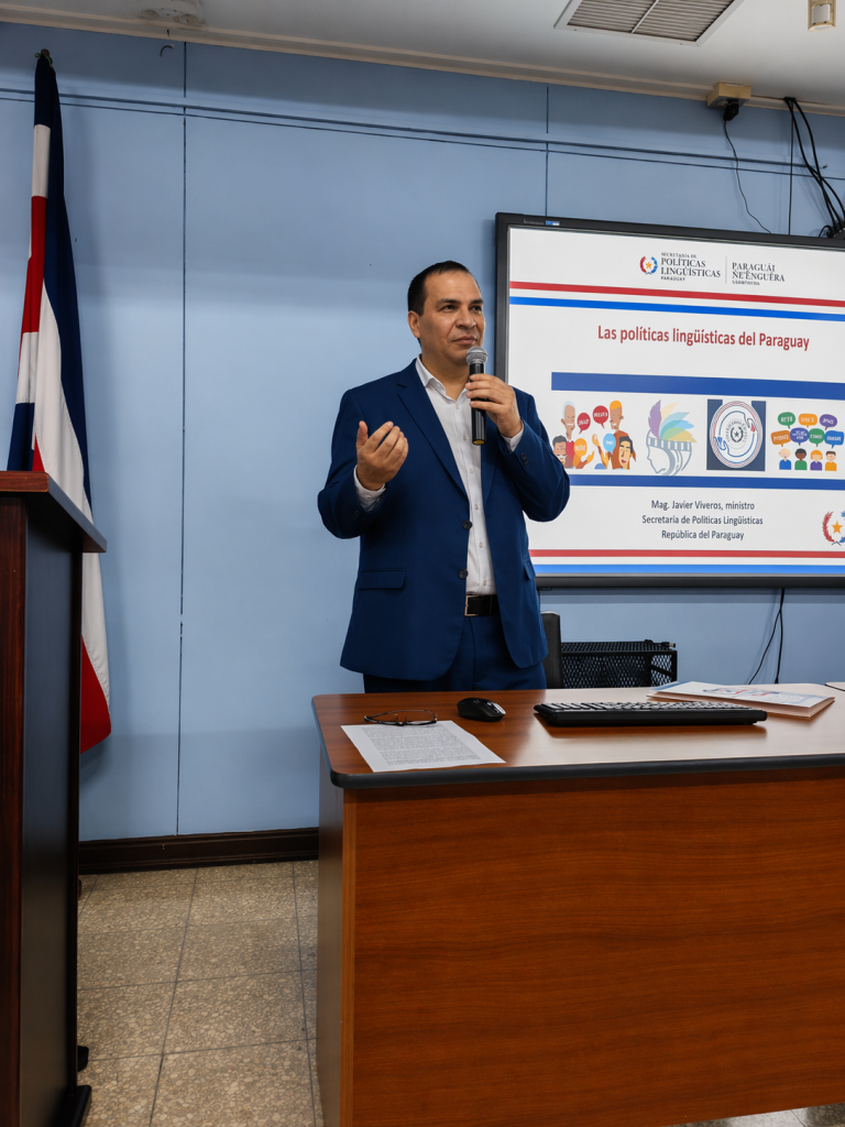 El ministro de la Secretaría de Políticas Lingüísticas del Paraguay, Javier Viveros, ofreció una conferencia magistral en la que abordó el panorama lingüístico paraguayo, con especial énfasis en las lenguas indígenas y el guaraní oficial, en el marco de la clase inaugural de la Escuela de Filología, Lingüística y Literatura de la Universidad de Costa Rica, la principal universidad estatal de Costa Rica.
